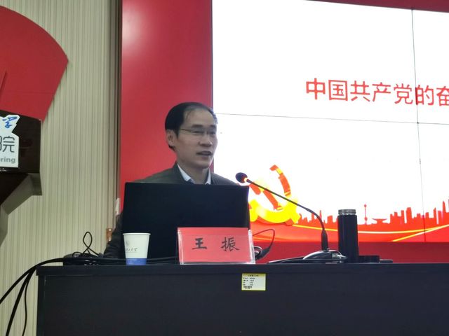 开班仪式结束后,校团委书记王振作《中国共产党的奋斗历程》开班第一讲,勉励同学们感受党的奋斗历程,坚定前行初心。