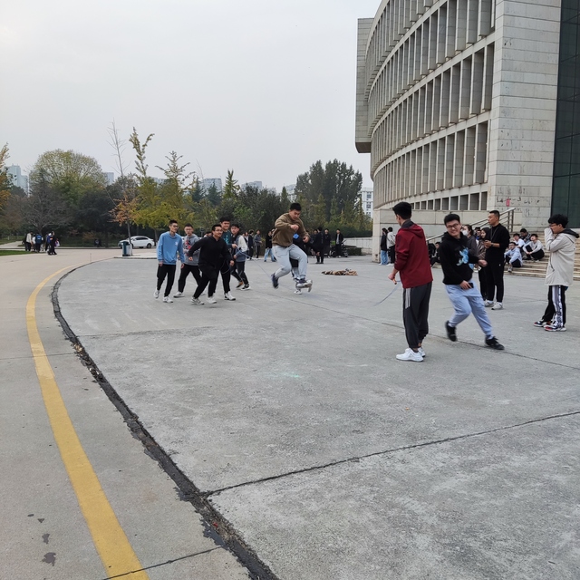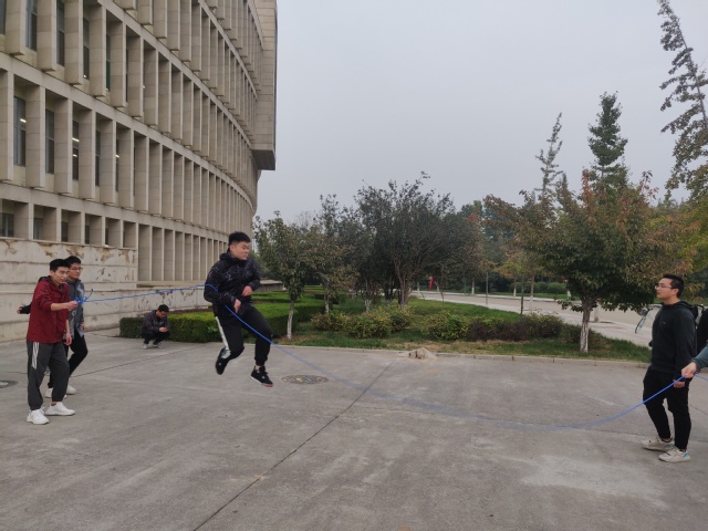 赛前,聂深强宣读了比赛办法,本着“友谊第一,比赛第二”的原则,先后举行了班级拔河、8字跳绳、奖品套圈等活动。比赛中,同学们热情高涨,奋勇争先,凭借自身身体素质及比赛技巧展现出较高的水准,团体赛中,同学们通力合作,彰显班级特色。
