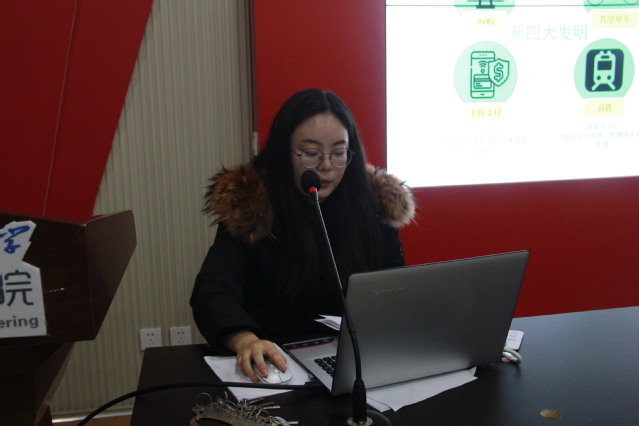 她以“爆破大王”马立训同志和马耀南烈士为例,讲解了“浴血奋战,百折不挠”是新民主主义革命时期中国共产党带领人民团结奋斗的真实写照,新民主主义革命推翻了帝国主义、封建主义、官僚资本主义三座大山,建立了人民当家作主的中华人民共和国。在社会主义革命和建设的伟大成就中,她详细讲解了山东铝厂的建设和开工投产,中国共产党带领人民自力更生、发愤图强实现了大步迈向社会主义社会的伟大飞跃。她还讲到从党的十一届三中全会开始中国进入了社会主义现代化建设的新时期,实现了人民生活从温饱不足到总体小康、奔向全面小康的历史跨越。最后,从外交、军事、经济、农业、科技、教育、基建和体育八个方面讲解了新时代中国特色社会主义的伟大成就,还提到了“中国新四大发明”分别是网购、共享单车、手机支付和高铁。