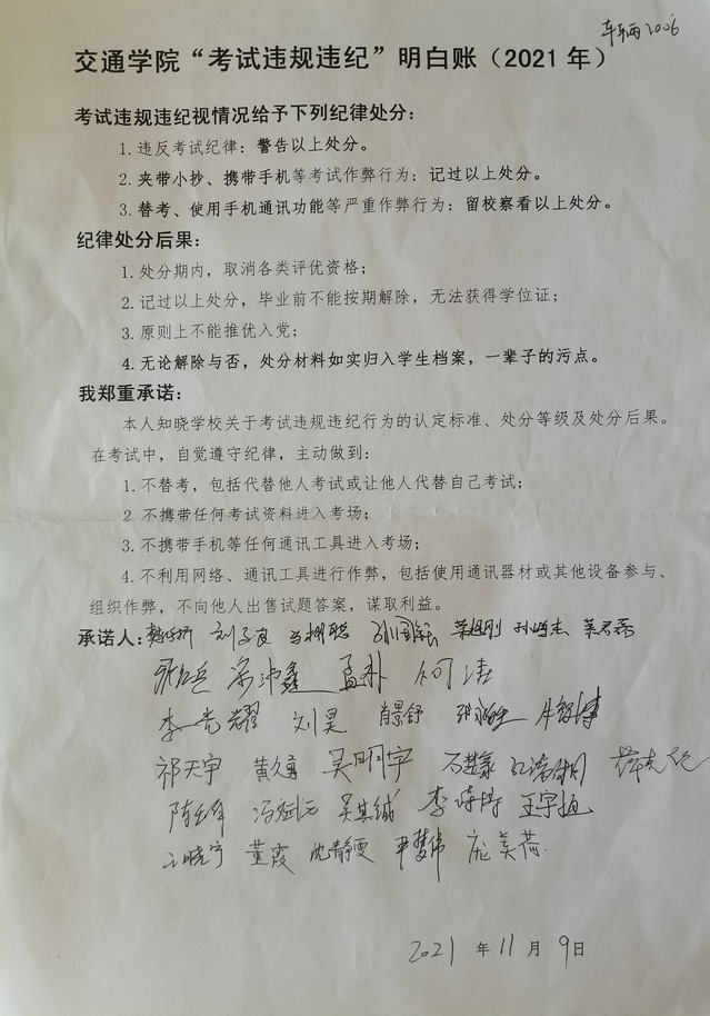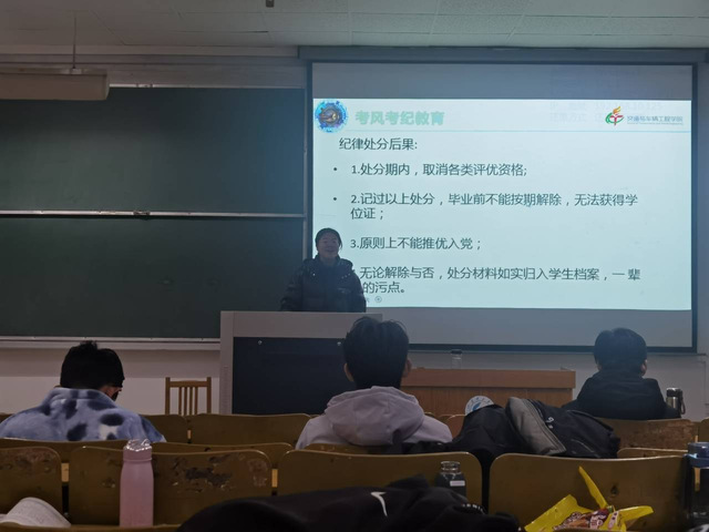 11月10日下午,车辆2006班在三号教学楼301教室为即将进行的概率论与数理统计考试进行考试考风考级教育主题班会来加强同学们遵守考试纪律的意识。学习委员王晓宁主持班会。