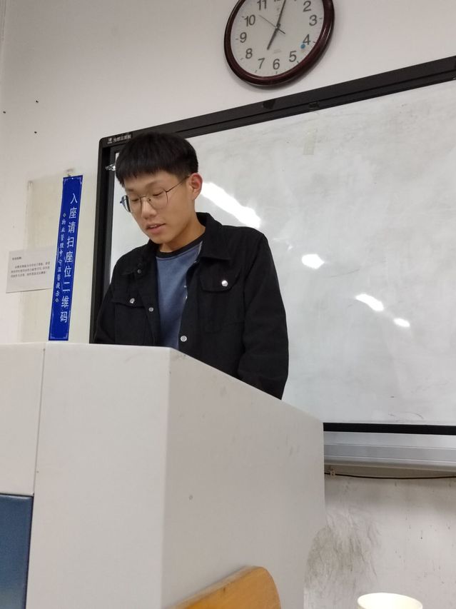 范庆贺就最近的班级学风状况进行分析,指出班级应加强学风建设,坚决杜绝上课迟到和玩电子设备的现象,做到“不迟到、不早退、进课堂、放手机”。他讲到,要充分利用个人时间,多做有用功,在学习上提升自我,要提高课堂学习效率,课后认真完成任务,积极维护良好的课堂秩序,营造优良的学习氛围。
