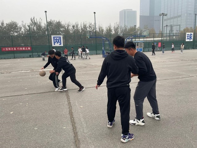 该班男同学积极自发组织队伍进行篮球比赛。开始阶段,丁楚阳所带领队伍大比分落后,但后期凭借队员之间的默契配合,利用独特的战术反超总比分,最终赢得胜利。