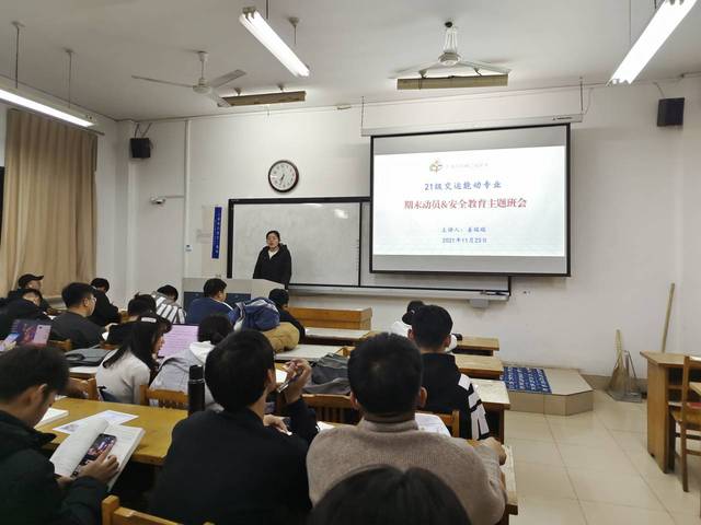 11月23日晚,公司2021级交运、能动专业在12号教学楼210、212、214教室举行了“期末动员”主题班会,此次班会由辅导员姜瑞瑞主讲,能动、交运专业2021级全体同学参加。