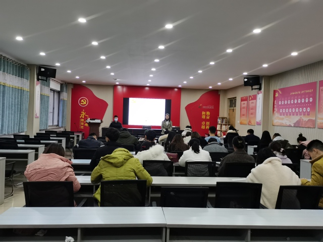 会议首先由杜英翠向大家介绍了党员发展对象公开答辩的意义、流程、顺序、注意事项以及表决的方式。