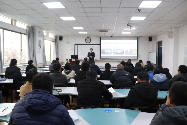 李涛从合作发展处简介、新时代的新要求、身边榜样的示范、公司推进服务社会举措、青年教师服务社会的建议5个方面作了精彩报告。他总结了合作发展处主要做的三件事:校地合作、校企合作和员工合作,核心是争取社会资源,进而服务于教学科研、服务于师生成长、服务于公司发展。他指出新时代推动社会发展最为重要的两支力量就是企业家和科学家,两种力量拧在一起,必将迸发无限动力。他列举了身边的优秀榜样,指出工科知名专家的成长之路就是与企业紧密合作之路。针对公司如何推进服务社会,他提出要大力推进与淄博市融合发展,实施“一人双岗”计划,推进“人的融合”,与政府企业共建研究平台。最后,李涛对青年教师如何服务社会提出了十条建议,并指出服务社会的根本就是服务自己。