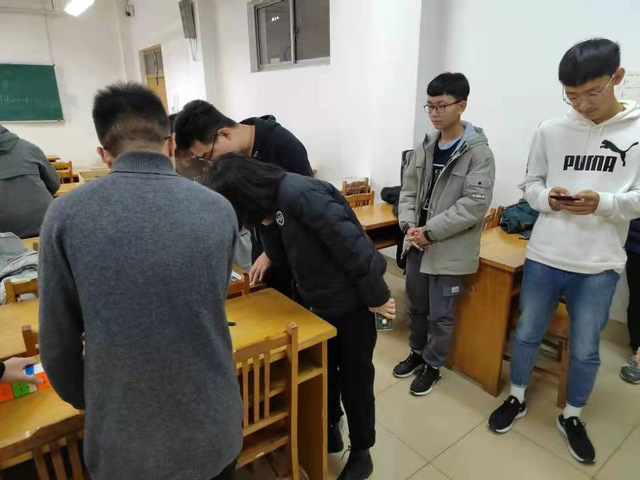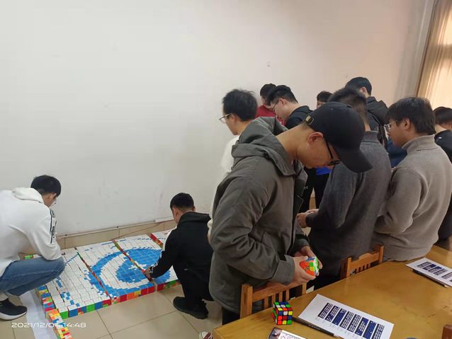 12月4日,公司魔方协会在12号教学楼215教室举行了“爱校园”拼图活动。此次活动由一百余名同学参加,每位同学都会分到一部分拼图,用魔方完成一个个色块,然后将一个个魔方汇总到一起,按照顺序放好,最终完成我们的校徽,并在整个拼图的四个角分别拼成“五”、“有”、“人”、“才”四个字,以响应公司的人才培养理念。