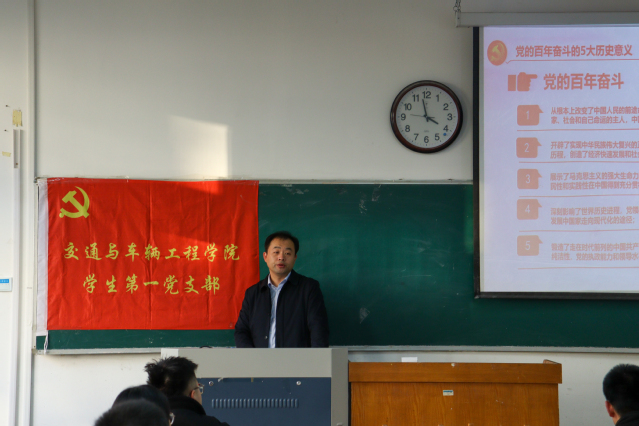 党课中,他结合支部获评公司2021年度基层党建创新项目立项就员工党员先锋模范作用发挥做出了深刻讲解,支部要下大力气全面推进常态化志愿服务、帮扶学业困难员工、科技创新型特色班级传承示范建设、优秀党员事迹引领、最优笔记服务群众、“无奋斗、不青春”优质党课巡讲6项实践载体建设工作和党支部制度体系建设,通过载体建设运营和制度体系完善,引领青年员工党员思想上建高度、学习上当模范、工作上争先锋、生活上显境界、格局上展胸怀、奋进中做表率,为贯彻落实党的十九届六中全会精神和实现中华民族伟大复兴的中国梦继续努力奋斗。