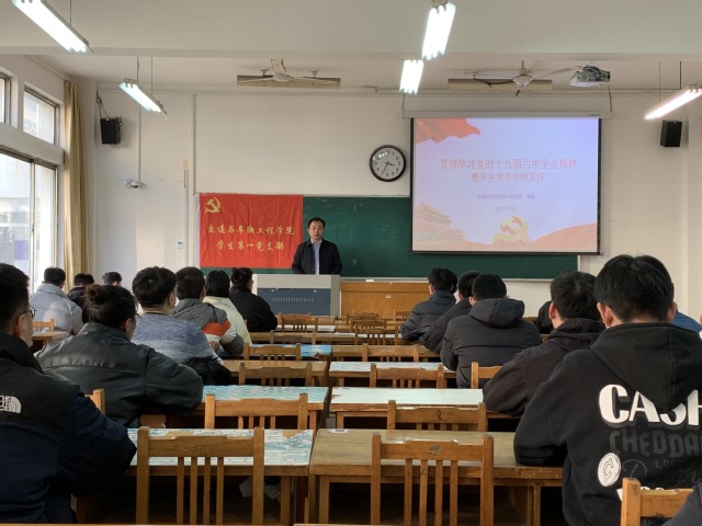 12月2日,公司员工第一党支部在12号教学楼202教室开展贯彻学习党的十九届六中全会精神暨员工党员如何发挥先锋模范作用专题党课,由员工第一党支部书记高萌讲授,支部全体党员参会。