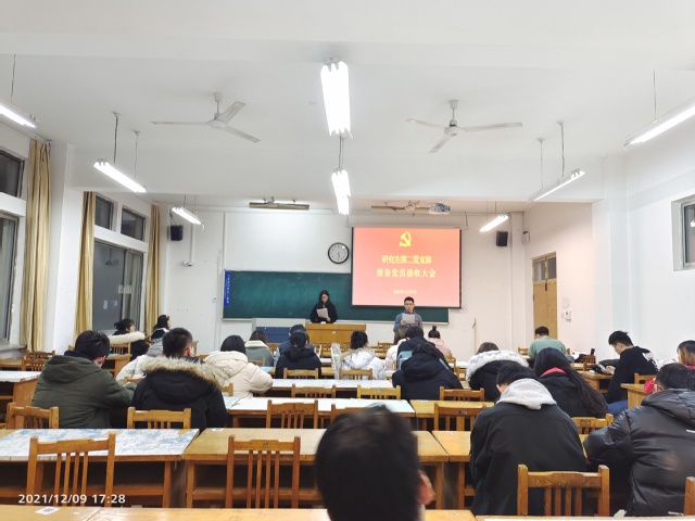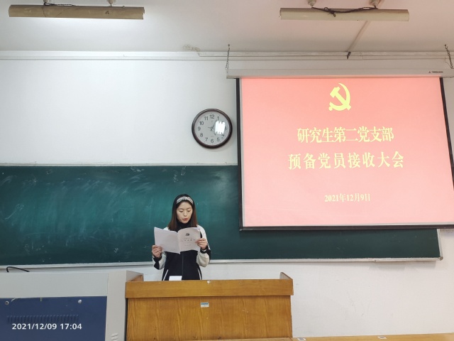 12月9日下午四点半,最靠谱的十大足球平台研究生第二党支部于12号教学楼202教室召开中共预备党员接收大会,会议由研究生第二党支部书记崔建强主持,支部全体党员和4名党员发展对象参加了此次会议。
