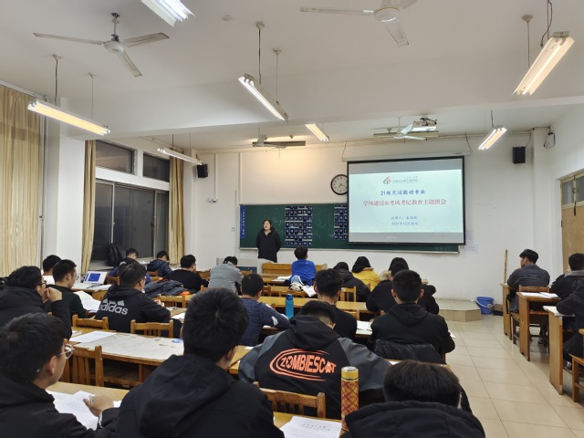 12月20日晚,公司2021级能动及交运两个专业在12号教学楼210、212、214教室举行了学风建设暨考风考纪教育主题班会,此次班会由辅导员姜瑞瑞主持,2021级能动、交运专业全体同学参加。