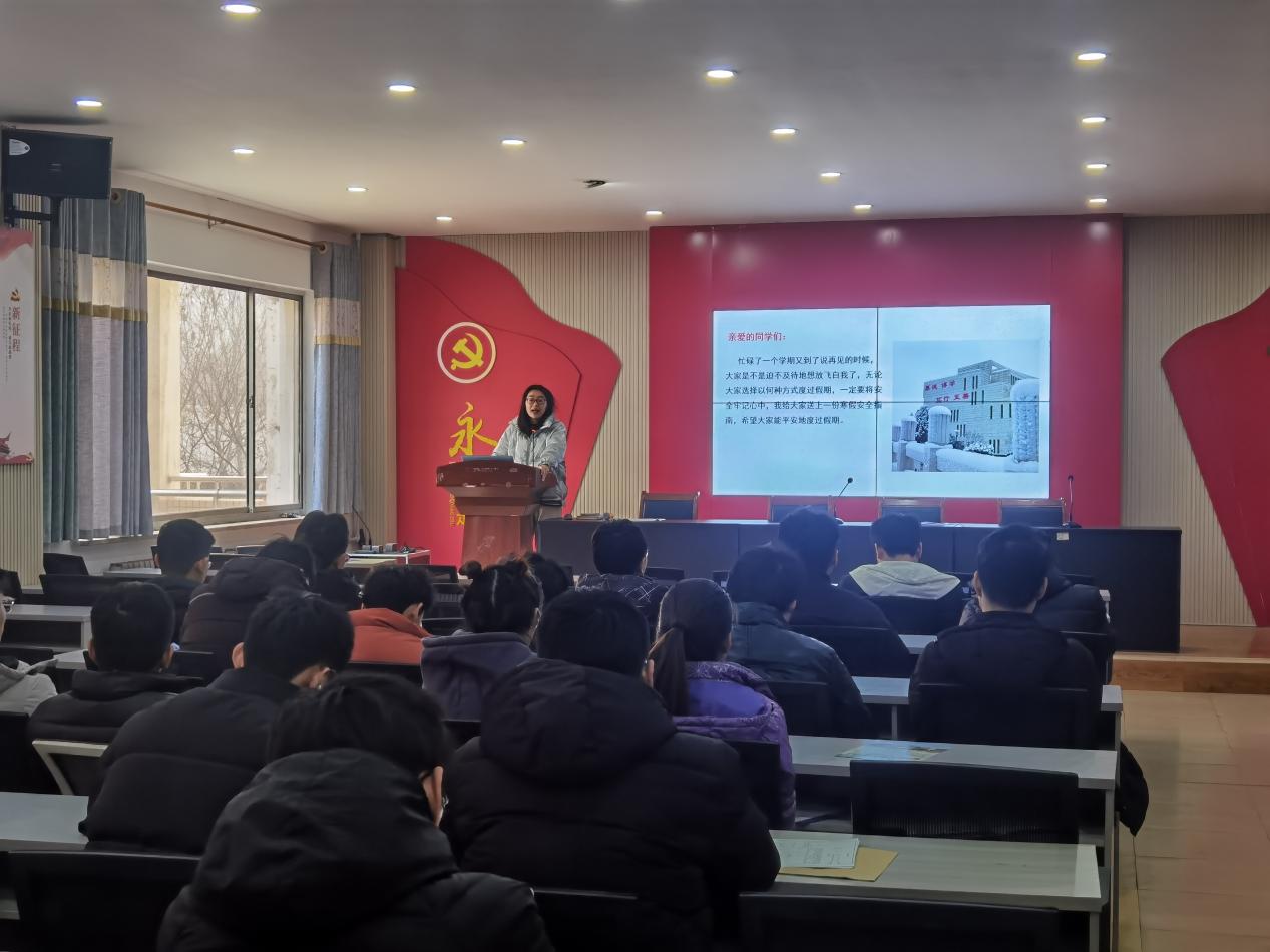 2022年1月7日下午,辅导员杨雨在12号教学楼217会议室召开2020级交工交运能动寒假离校前会议,2020级交通运输、交通工程、能源与动力工程专业全体员工参加。