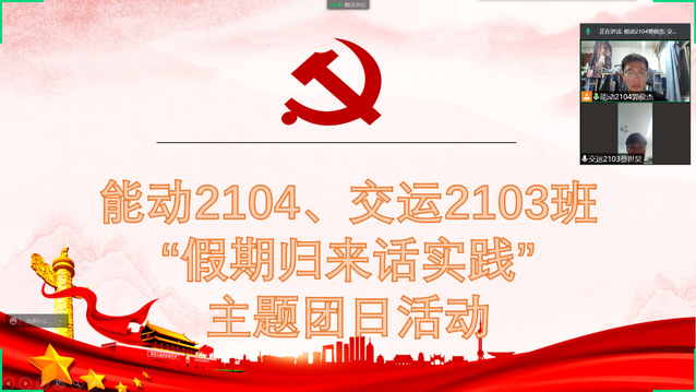 3月14日晚,公司能动2104班与交运2103班联合开展了线上“寒假归来话实践”主题团日活动,此次活动在两个班的团支书的配合下顺利进行,两班同学全体参加,各班代表与同学们分享了自己的社会实践经历,为以后同学们进行更好的社会实践打下了基础。