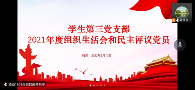 3月17日下午,公司员工第三党支部于腾讯会议线上召开2021年度组织生活会和民主评议党员工作,姜瑞瑞同志主持会议,支部全体党员参加,李本富同志出席会议。