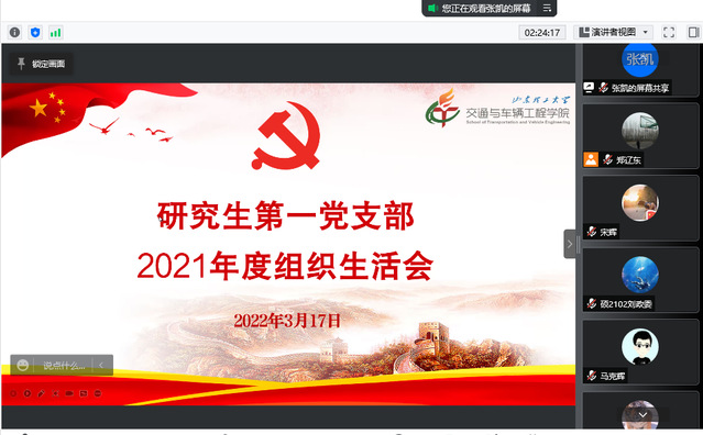 2022年3月17日下午,研究生第一党支部在线上召开2021年度组织生活会,开展民主评议党员工作。公司党委委员、副经理李波老师参加会议并指导点评,党支部全体党员参加会议。