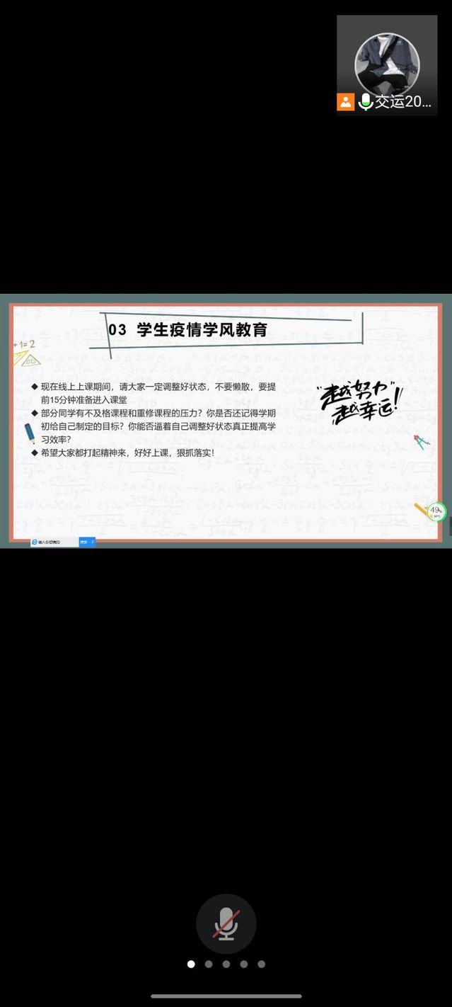 3月29日晚,交运2001班开展疫情防控及学风教育线上主题班会。会议由班长张翌珂主持,交运2001班全体同学参加。