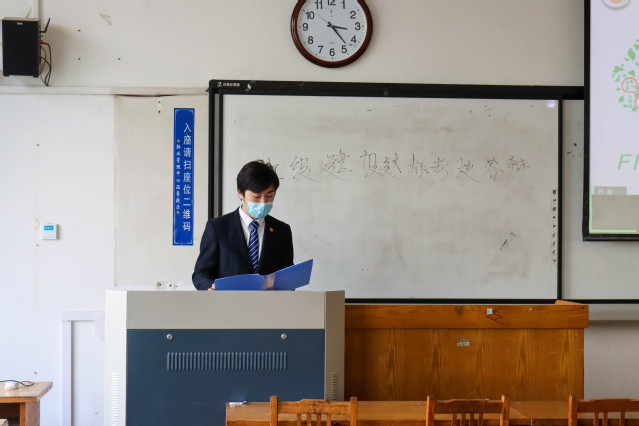 为全面总结上一学期班级建设成果,更好地开展新学期班级建设工作,4月7日下午,公司在12号教学楼分年级举行2021-2022学年第一学期班级建设达标考核答辩会,公司党委副书记蔡清吉、团委书记高萌、员工工作办公室全体辅导员在各年级答辩会场担任评委,受疫情影响,本次会议采用线上线下相结合的方式进行,评委老师与答辩班干部参与现场答辩,其余员工干部参加线上会议并进行评分。