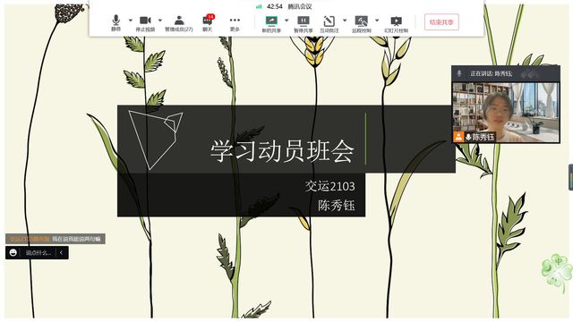 4月24日晚,交运2103班召开学习动员会议。考虑当前防疫形势,此次会议在线上召开。交运2103班同学全部参加。
