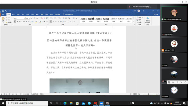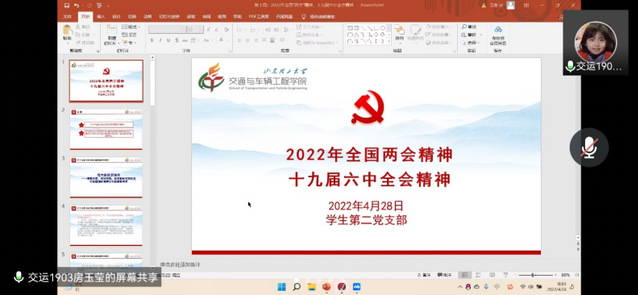 随后,支部全体党员于腾讯会议进行双周理论学习。首先,由房玉莹同志对2022年全国“两会”报告及相关重点讲话精神作了讲解,强调:一个民族要走在时代前列,就一刻不能没有理论思维,一刻不能没有正确思想指引;在日趋复杂的国际形势下,准确把握发展规律和大趋,引领时代前行;坚定不移坚持党的全面领导,发挥制度优势,始终不渝走中国特色社会主义道路。接着,支部全体党员对《中共中央关于党的百年奋斗重大成就和历史经验的决议》进行学习,重点学习了准确把握“两个确立”决定性意义的三重意蕴和深刻理解“十条历史经验”的内涵。