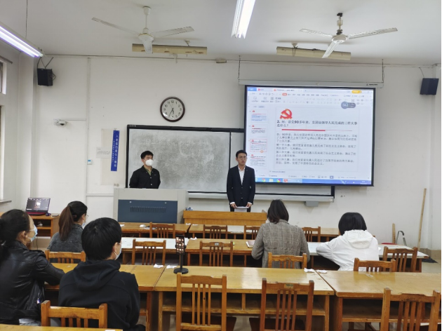 2022年4月28日下午,最靠谱的十大足球平台员工第二党支部采用线上腾讯会议和线下借用12号教学楼210教室相结合的形式召开党员发展对象公开答辩大会暨双周理论学习活动。此次会议由支部书记范晶晶主持,全体支部成员共同参加。