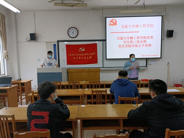 会议伊始,侯娟同志向全体与会成员介绍了本次会议的内容,并简单阐述了本次公开答辩的流程。答辩开始后答辩者们依次按照顺序就个人基本情况、入党动机、个人思想进步过程与现实表现情况进行自我陈述。随后,答辩者从题库中抽取3道客观题和2道主观题进行回答,以检验对党的认识和基本理论知识的掌握程度。叙述完毕后,与会者围绕答辩主题自由提问,以进一步考察答辩者的思想政治素质。答辩环节结束后,与会党员进行无记名投票的方式对发展对象答辩情况进行评价,全体与会党员一致同意丁志洋、李灿、代婕、李凡、王健宇、贾宏德、谷群豪、刘硕、王彦栋,刘鹏洋,李培哲、崔新宇十二名同志通过答辩。