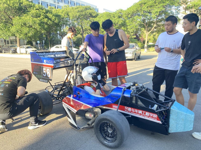5月24日下午,至尚方程式赛车队在第四体育场进行了赛车训练。伴随着烈日与高温,队员们的驾驶训练各项有条不紊的进行。