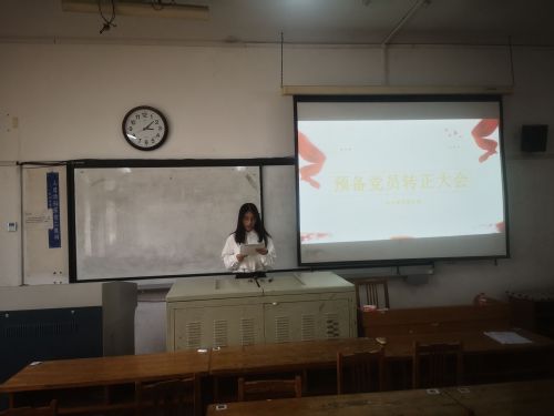 各位预备党员汇报预备期间的个人表现以及需要向党组织说明的问题,阐述个人在校基本情况和自我认知,对党的认识和了解,提出转正申请。随后与会党员对申请人能否转正进行充分讨论、评议,并且由与会党员采取无记名投票的方式进行表决,统计投票结果,形成大会决议。全体党员一致同意周璐瑶、李岩松、李小雨、魏健洛、李博、孙光辉、倪欢欢、杜继坤、刘姝琪、范江鹏等10名同志按期转为中共正式党员,最后转正党员逐一进行表态。
