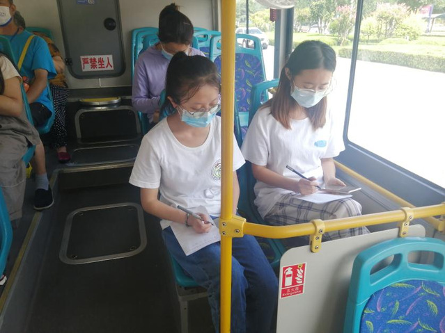 7月7日上午9点,实践团成员分为两个小组,分别对K222和K7路公交进行了详细的跟车调查、记录与反馈,调查内容包括每个路线的站点数、每站的上下车人数和时间间隔、始站上车时间和末站下车时间等。