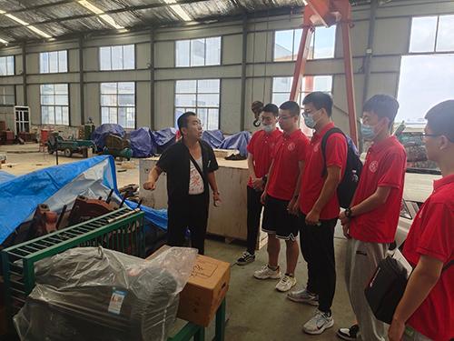 谷先生和鲁动新能源有限公司负责人对实践团全体成员的到来表示热烈欢迎,并向大家介绍了公司主营的新能源发电用发动机。发动机以天然气、沼气、瓦斯等可燃气体为原料,产出可并入国家电网的电能,亦可孤岛运行,在环保的同时兼顾资源再利用。同时负责人指出公司的亮点产品:集装箱式静音发电机机组,其增加机组外壁有波峰吸音棉,使用更加便携安全。随后谷先生带领大家一起参观配件仓库,细心讲解装配的紧固问题,他说装配发动机机组时要注意扭矩大小,过松过紧都易发生安全事故。通过谷先生的介绍,大家对新能源发动机机组也有了更深的了解。
