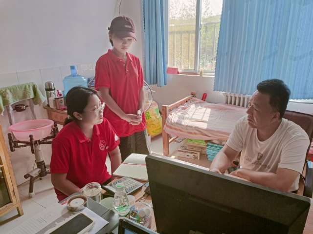 7月9日,“爱之传承”实践团谷德帅、潘相诚、刘梦雪、詹卫诺等队员来到副董事长办公室与明德小学副董事长孟洪喜就公司发展规划等问题进行走访调研。