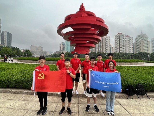“青春孕育无限希望,青年创造美好的明天。一个民族只有寄望青春、永葆青春,才能兴旺发达。” 青岛五四广场上的标志建筑“五月的风”,雕塑以单纯简练的造型元素排列组合成旋转腾空的“风”,顶部装置有火炬头,通体火红,寓意青岛与五四运动的渊源,五四运动是点燃新民主主义革命的“火种”。同时也在点亮着实践团成员的那份浓厚的爱国心。