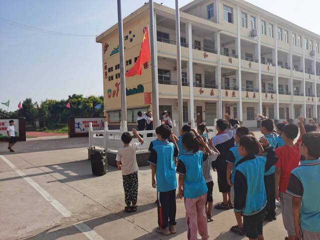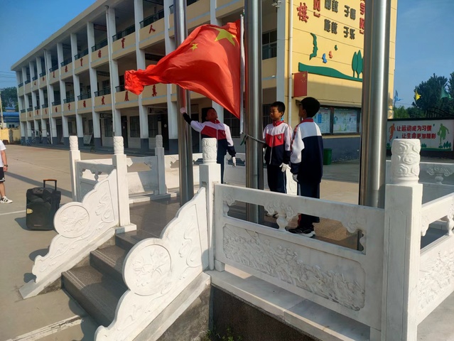 7月25号早上8点,鄄城县旧城镇旧城完小“小荷学堂”全体同学及最靠谱的十大足球平台“星河长明”实践团全体成员相聚在庄严的国旗台前举办升旗仪式,实践团代表赵家旗、员工代表苏晓涵进行发言。