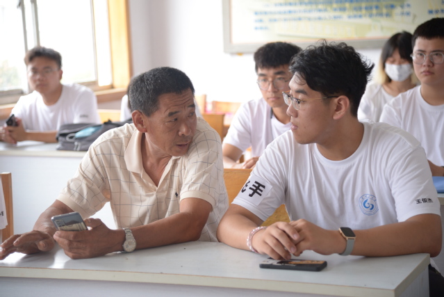 7月29日上午,创飞科技实践团前往莱阳市穴坊镇东贤友村村委,在村民委员会会议室就村庄概况展开交流。东贤友村书记兼村主任刘桂宝、东贤友村会计刘以臣和实践团全体成员参加。