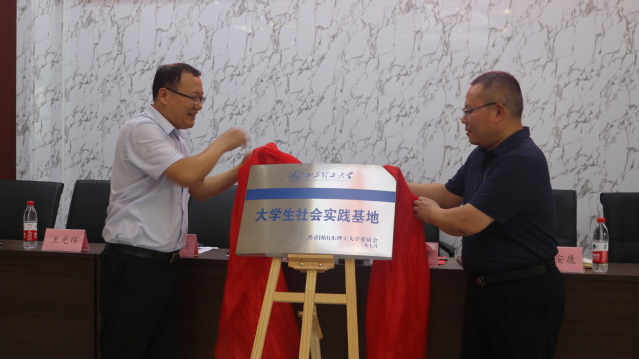 随后,村校双方共同签署了老员工社会实践基地共建协议书,仪式进行时交通与车辆工程公司党委副书记蔡清吉与依汶镇镇长李东峰共同揭牌。