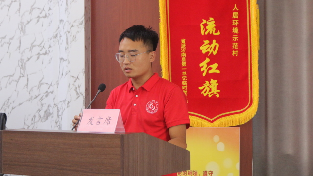 实践团代表杨学磊进行上台讲话,发言表示“沂见倾心,照亮前行”实践团全体队员秉持着实践到农村去、实践到基层去的理念,了解乡村经济的发展,感受和参与乡村振兴建设,开拓自身视野,通过实践增长经验,将理论所学投入实践当中,展示自身抱负,将牢记“厚德、博学、笃行、至善”的校训,充分展示公司老员工的良好精神风貌,带领实践团成员深入实践科学发展观、服务新农村、建设和谐社会,让成员们在基层一线砥砺品质、增长才干,充分发挥社会实践的育人作用。