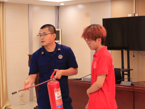 此次培训主要由张店区消防大队成员讲解有关消防的基本常识以及经典案例。培训伊始,讲解员循循善诱,由浅入深的向成员简单介绍了消防器械的使用,疏散逃生的基本常识等。而后,讲解员特邀实践团成员沉浸式体验灭火过程,并指出其中优点与不足之处,帮助实践团成员掌握消防要领,提升自身消防知识储备。