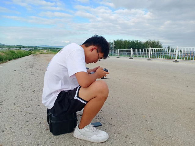 上午,团队成员对待测道路的环境状况进行实地考察,以确定空气湿度、风力风向、光照等影响因素的具体数值,从而为后续检测工作的平稳进行坚实的基础。随后,王俊杰、赵晓鹏及刘昊坤对设备各组成部分进行检查并加以安装,并根据检测时天气状况调至最佳的相机参数。