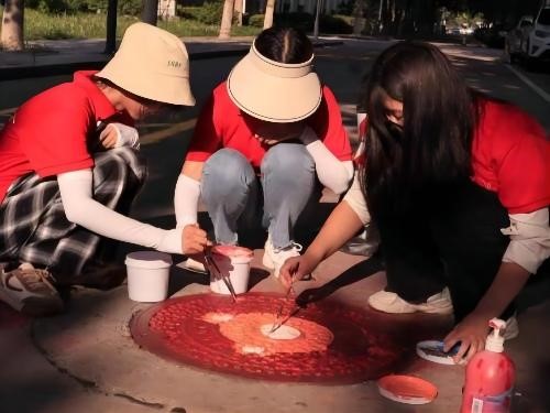 为深化社区居民主人公意识,自觉爱护社区环境,谨记消防知识。实践团别出心裁,井盖作画,使井盖变身“景盖”。活动现场,实践团首先为保持井盖的清洁,为井盖清洗,除锈。而后进行调色,大面积铺色,晾晒,细节勾画。最后,富含消防元素,传递城市文明的“景盖”新鲜出炉,为来往路人提供了视觉与精神的双重享受,将消防的种子埋入社区各个角落。