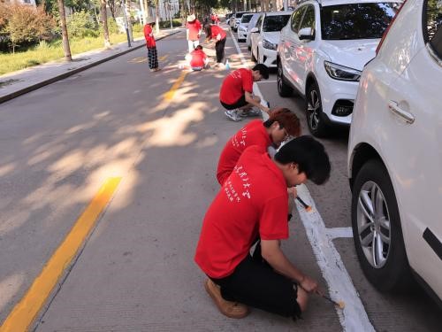 而后,实践团分头行动,正式开展相关活动。由付天乐带队,深入小区内部,倾听居民心声,详细记录居民意见。并将其整理成册,向社区管理者谏言;由刘鹏洋带队,补涂消防标识,由外及内,由表及里的营造良好的消防氛围,提高社区居民的消防意识;由何雨芯带队,在井盖上作画,美化社区环境,给社区居民带来良好体验感的同时潜移默化的影响居民的消防安全意识。