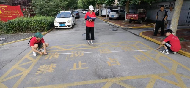 实践团成员发现在小区主路具有醒目的“消防通道严禁停车”消防通道标识,但仍有部分车辆占用消防通道。实践团成员在测量消防通道宽度的同时耐心向过往群众宣讲消防内容,提醒居民不能随便占用消防车通道,向周边居民群众普及道路交通常识,宣传机动车占用消防通道的严重危害,切实增强居民群众的交通安全意识和消防意识,有效解决了私家车乱停乱放,占用、堵塞消防通道的问题。