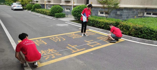实践测量前,队长孙理祖组织实践团成员进行了讨论会议,会议内容包含实践测量具体时间、计划和测量工具的准备,以及安排相关队员提前联络小区内相关部门。测量工作进行过程中,实践团成员详细检查了消防车通道宽度、有无限高等情况,并做好相关数据采集。实践团成员于测试期间发现的问题及时与小区居民进行沟通,了解更多有关小区内消防通道设施情况,并给小区内居民详细普及宣传了有关消防安全的知识。