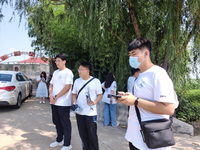 上午,实践团乘坐两辆汽车,率先来到穴坊镇水稻试验田。首先飞手孙舒鹏起飞无人机Mini3 pro,在选择最佳行高和角度后开始运镜,操控无人机远离所选镜头范围内的试验田,同时升高无人机高度,从而达到渐远的拍摄效果,完美呈现稻田的辽阔气势。随后队长王俊杰组装M300RTK并起飞,操控无人机相对于稻田侧向飞行,展现出水稻的生机与活力。