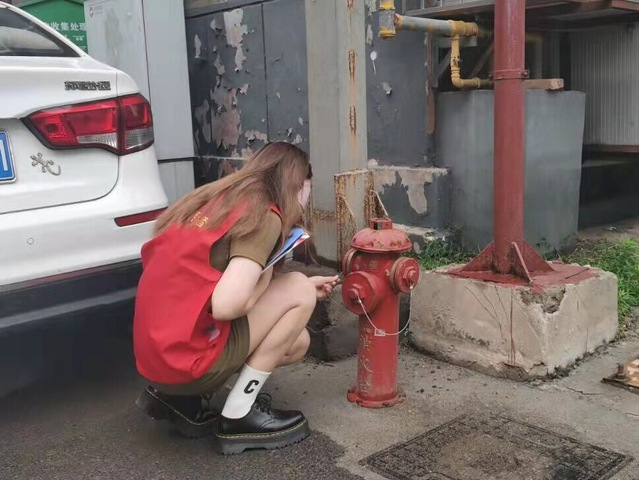 7月29日“畅通消防,共享平安”实践团于张店区马三社区开展占用消防通道情况分析以及消防器械检查活动。