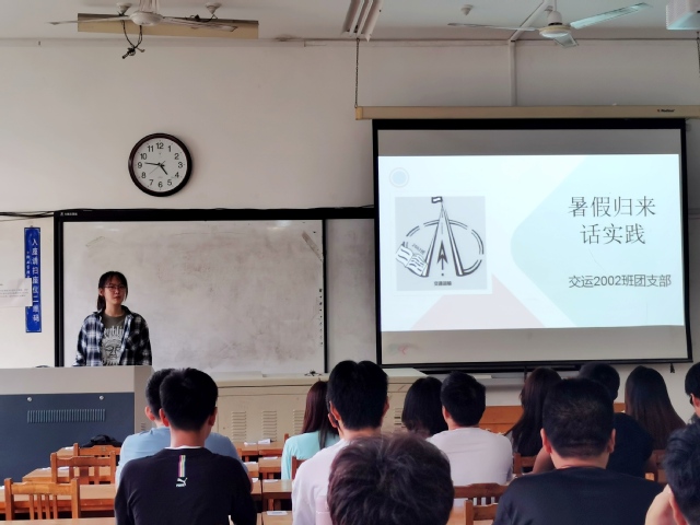 9月1日下午,公司交运2002班团支部在12号教学楼213教室开展“暑假归来话实践”主题团日活动。此次活动由团支书严婧涵主持,交运2002班全体同学参加。严婧涵首先简单介绍班级各个社会实践团队以及所选的不同主题,再请各个团队代表总结分享社会实践经历和体会,让同学们了解本班寒假社会实践情况,展评实践成果。