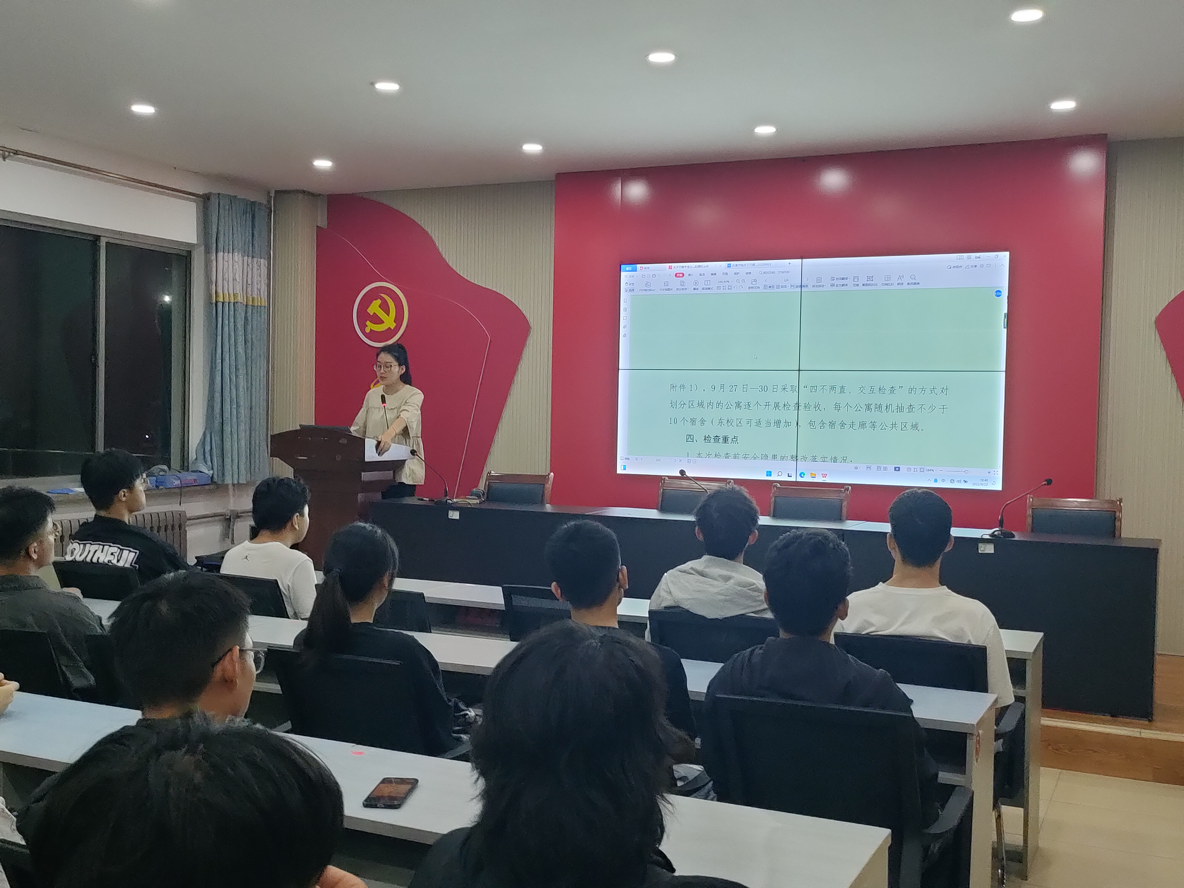 会议伊始,杨雨着重强调此次员工公寓消防安全检查的重要意义、重点排查事项并提出了明确具体的要求。本次员工公寓安全检查工作重点检查寝室用电管理、消防安全隐患等情况,针对宿舍插座使用、大功率电器使用、室内吸烟以及易燃物阳台堆积等安全隐患进行重点排查。