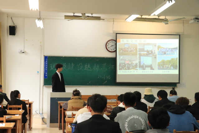 此次答辩会分为PPT汇报和现场答辩两部分,答辩人需要在6分钟内完成答辩。各班答辩人以思想建设、组织建设、文化建设、学风建设四个方面对上一学期班级建设进行了详细介绍,对上一学期班级的学习、工作和生活进行总结,并设立工作目标,对新学期的班级建设工作进行了展望。
