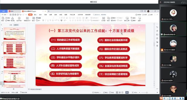 为深入学习贯彻公司第四次党代会精神,会议伊始,鲍瑞雪同志带领支部全体党员学习了中国共产党体育外网十大平台app第四次代表大会的相关内容。本次大会以高举中国特色社会主义伟大旗帜,以习近平新时代中国特色社会主义思想为指导,全面贯彻党的十九大和十九届历次全会精神,认真落实省第十二次党代会精神,坚持立德树人根本任务,改革创新、追求卓越,勇毅前行担使命,踔厉奋发争一流,全面开创特色鲜明的高水平教学研究型大学建设新局面为主题,历时两日,圆满完成各项任务。
