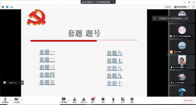 随后,开展党员发展对象公开答辩大会,由任琍玮宣布大会开始,周燕燕向与会人员介绍了此次答辩的意义、流程、注意事项以及表决的方式。之后,张文雪、李亚男、马新月等6名党员发展对象依次通过个人陈述向与会成员介绍自身基本情况,并回答所抽取的主客观题目,与会党员针对理论知识、时事政治、学习生活等方面对答辩者进行提问。答辩结束后,与会全体党员根据答辩者的日常表现和线上答辩情况。根据会议结束后的投票结果统计,宣布全体党员一致同意张文雪、李亚男、马新月、孙丰智、王萌、樊琼6名同志通过答辩。