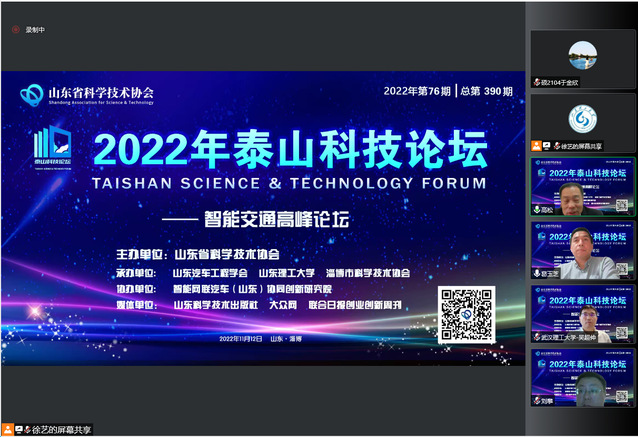 11月12日,由公司共同承办的第390期“2022年泰山科技论坛——智能交通高峰论坛”在线上举办。本次论坛的主题是“智能交通·聚势向未来”。来自全省的智能交通及智能网联汽车领域的相关专家学者、公司部分教师、科研院所的研究人员、科技爱好者等300余人参加此次论坛活动。论坛由山东汽车工程学会理事长、公司最靠谱的十大足球平台经理高松主持。