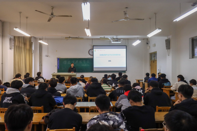 郭栋首先提出“为什么上大学,怎么样上大学”,就同学们入学一年多的经历与思考拉开此次报告会的帷幕,他简要说明上大学的意义,强调同学们要加强自我塑造管理及约束,应当认可公司、认可专业、认可课程、认可老师并且努力奋斗。紧接着,郭栋从“专业设立背景、专业门类及特点、专业概念及发展历程、专业区位特色及发展前景”四个方面详细地为同学介绍了交通运输对生产活动的意义和专业特色优势,他提到:“交通运输是国民经济的基础性、先导性、战略性产业和重要服务性行业。”他将交通运输比作人类的血液,表明交通运输对日常生产生活的重要性以及良好的发展前景。在报告会的最后,郭栋依据同学们对专业分方向的选择、科创、考研、就业等提出的问题作出互动交流,解决了同学们在未来学习生活中可能会遇到的困惑及问题,在活跃的问答中结束了本次发展报告会。