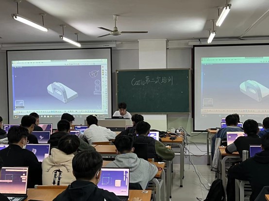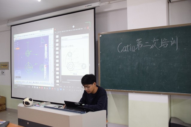 作为第二次的CATIA培训,大家对于建模的了解更加深入,电脑屏幕上的模型也逐渐复杂,各组队员们继续在一旁等待,关注大家进程,及时解答疑惑。